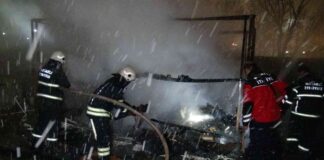 Şantiye bekçisinin kaldığı kulübe alevlere teslim oldu