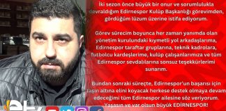 EDİRNESPOR BAŞKANI AYAYDIN İSTİFA ETTİ