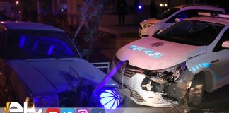 EHLİYETSİZ SÜRÜCÜ, POLİS ARACINA VE SİTE GİRİŞİNE ÇARPTI