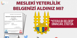 “YETERLİLİK BELGESİ” SINAVLARI, ETSO’DA