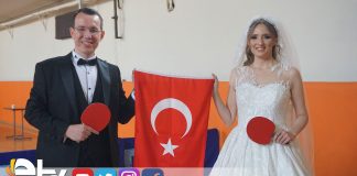 GELİNLİK VE DAMATLIKLARIYLA DÜĞÜN ÖNCESİ MASA TENİSİ OYNADILAR