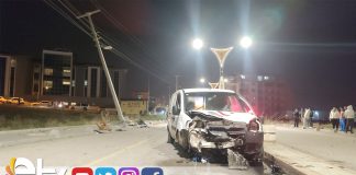 HAFİF TİCARİ ARAÇ, ELEKTRİK DİREĞİNE ÇARPTI: 4 YARALI
