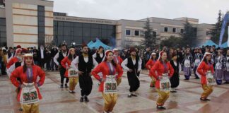 Üniversiteli gençlerden kar altında nevruz kutlaması