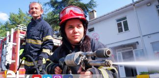 İTFAİYECİ BABA-KIZ BİRLİKTE GÖREV YAPIYOR