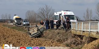 KONTROLDEN ÇIKAN OTOMOBİL TAKLA ATIP TARLAYA DEVRİLDİ