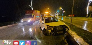 SU BİRİKİNTİSİ KAZAYA NEDEN OLDU: OTOMOBİL DİREĞE VE REFÜJE ÇARPTI