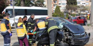 Refüje çarpan otomobil hurdaya döndü, sıkışan yaralıları itfaiye çıkardı