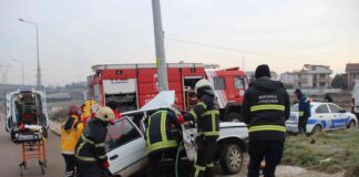 Direğe çarpan otomobilde sıkışan sürücüyü zamanla yarışarak kurtardılar