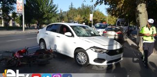 OTOMOBİLLE KAFA KAFAYA ÇARPIŞAN MOTOSİKLETLİYİ KASKI KURTARDI