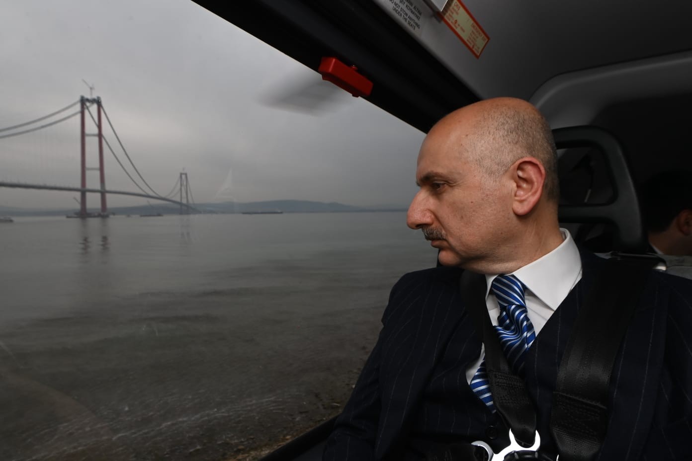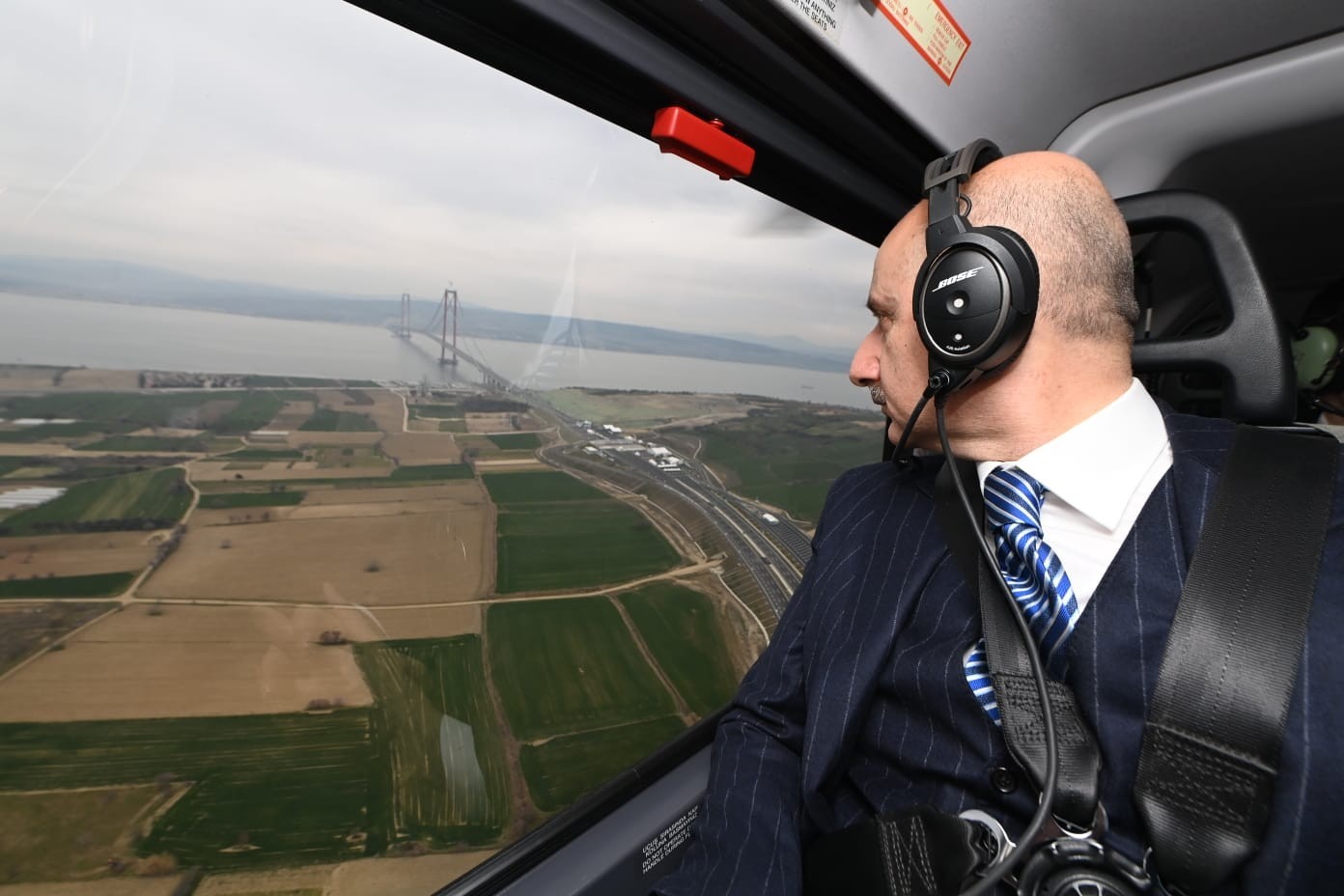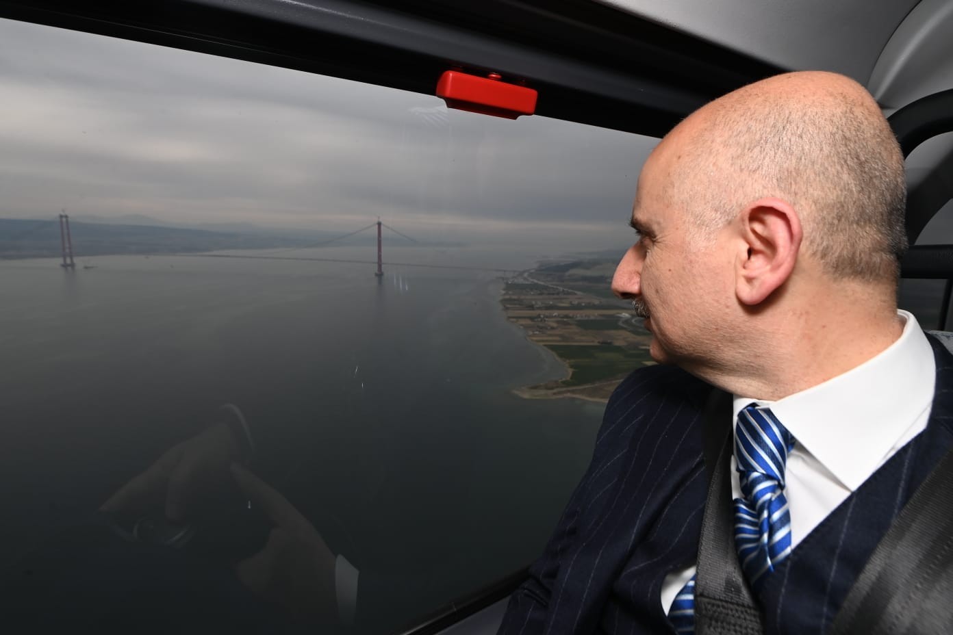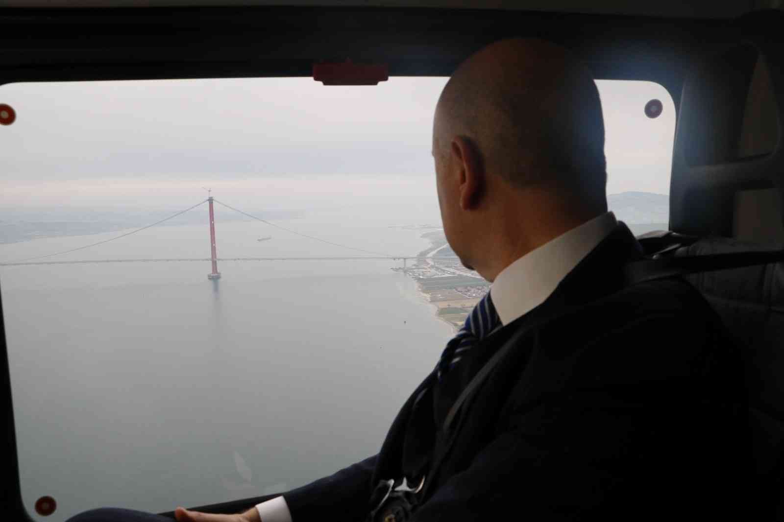 Cumhurbaşkanı Recep Tayyip Erdoğan’ın katılımı ile 18 Mart Cuma günü gerçekleşecek olan 1915 Çanakkale Köprüsü açılışı için gelen Ulaştırma ve Altyapı Bakanı Adil Karaismailoğlu, köprüdeki son çalışmaları havadan inceledi.