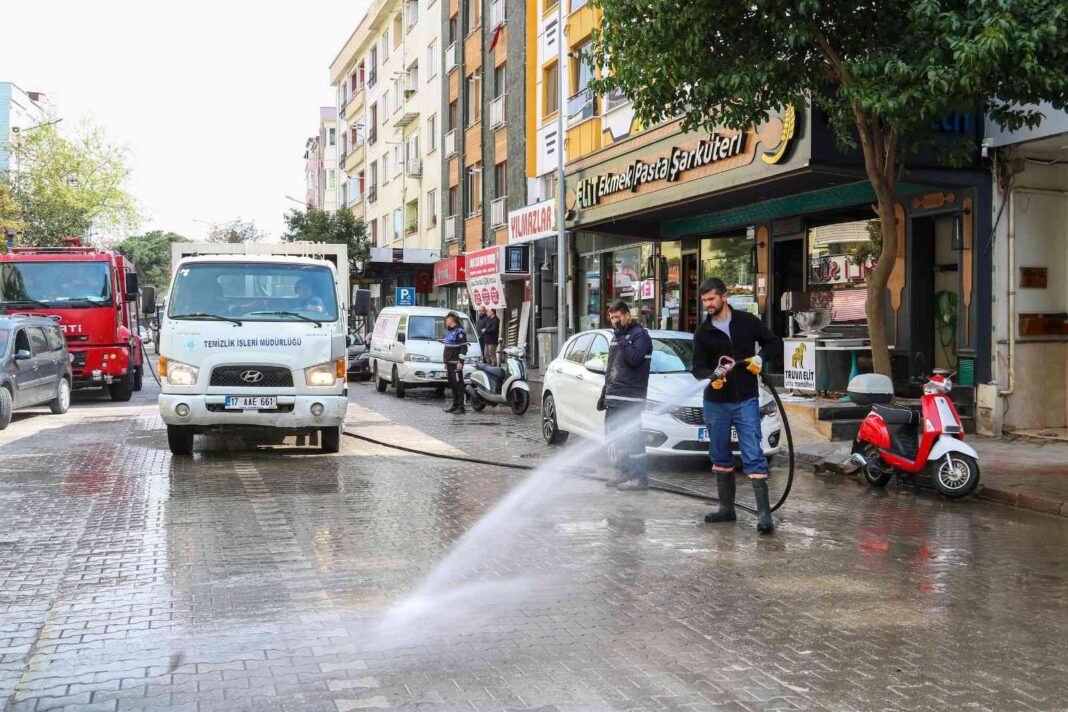 Biga Belediyesi’ne İtfaiye Müdürlüğü personeli, ilçe genelindeki cadde ve sokaklar ile birlikte, mezarlık çevresi ve cami bahçelerinde yıkama çalışması yaptı.