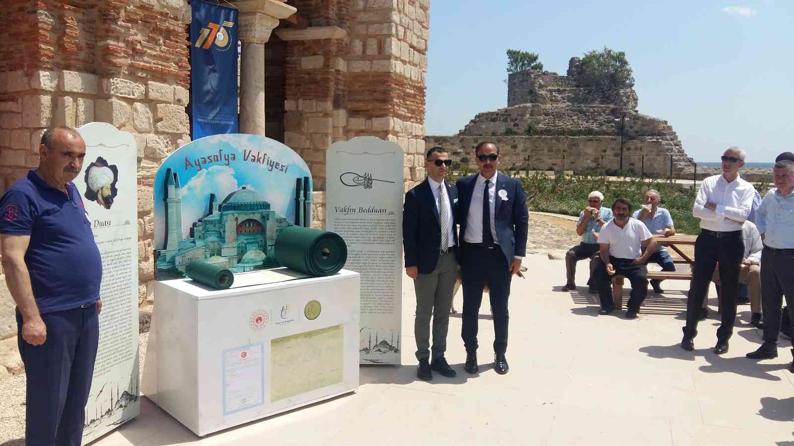 Edirne’nin Enez ilçesinde bulunan Küçük Ayasofya (Fatih) Camisi ile 65,30 metre uzunluğundaki ceylan derisi üzerine yazılmış 1463 tarihli Ayasofya Vakfiyesi ile buluşturuldu. Ayasofya Vakfiyesi standına ilave olarak Kanuni dönemi Kudüs Evkaf Defteri ve Arşiv Dairesi Başkanlığı Kuyud-ı Kadime arşivinden getirilerek sergilenen diğer arşiv belgeleri de katılımcılar tarafından ilgi ve heyecanla ziyaret edildi. Ayrıca Küçük Ayasofya Camii’nde Tapu ve Kadastro Şehitleri ile geçmişten günümüze kadar tüm tapu ve kadastro çalışanları adına Mevlid-i Şerif okutuldu.