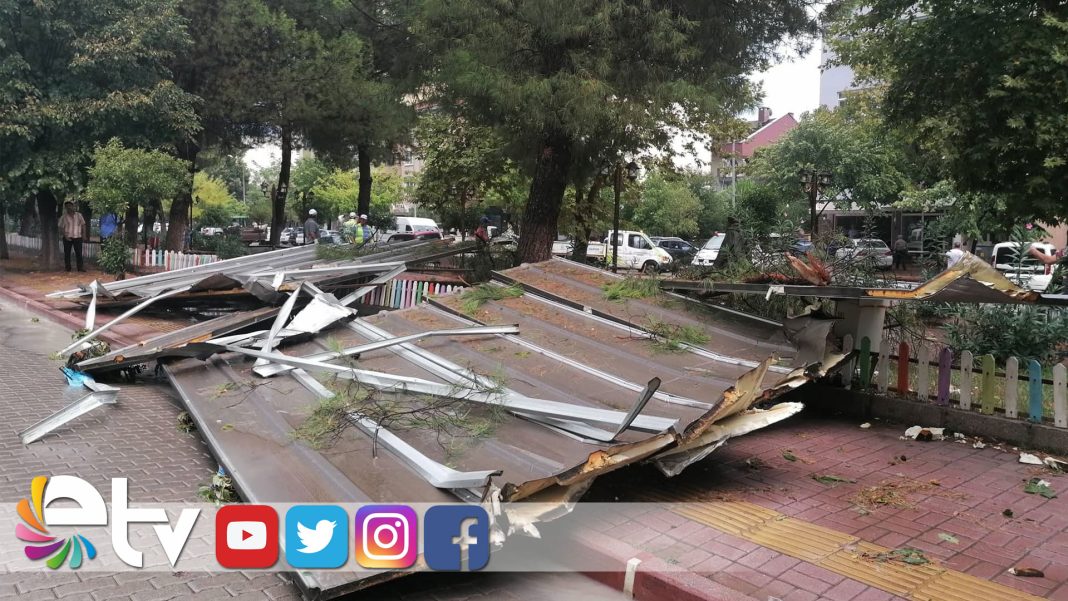 Çanakkale’nin Çan ilçesinde etkili olan fırtına nedeniyle bir evin çatısı uçtu, çok sayıda ağaç devrildi.