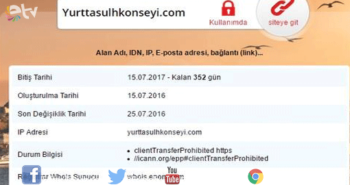 Darbecilerin Yurtta Sulh Konsey’i adlı internet sitesinin Panama üzerinden satın alındığı görülüyor. Darbeci hainlerin internet sitesini darbeden sadece saatler öncesi aldığı dikkat çekiyor