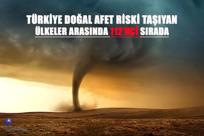 Ajans Press’in World Risk Report verilerinden elde ettiği bilgilere göre, Türkiye doğal afet riski taşıyan ülkeler arasında yer alırken, bu oranın yüzde 4,73 olduğu belirlendi. Dünyanın en fazla doğal afet riski taşıyan ülkesi ise yüzde 50,28 oranla Vanuatu olarak kaydedildi. 172 ülkenin olduğu listede en az doğal afet görülen ülkesi de Katar olarak saptandı. Katar’da bu oran sadece yüzde 0,36 iken ona 0,57 ile Malta’nın, yüzde 1,25 ile de Suudi Arabistan’ın eşlik ettiği görüldü. Türkiye ise bu listeye 112. sıradan girdi.