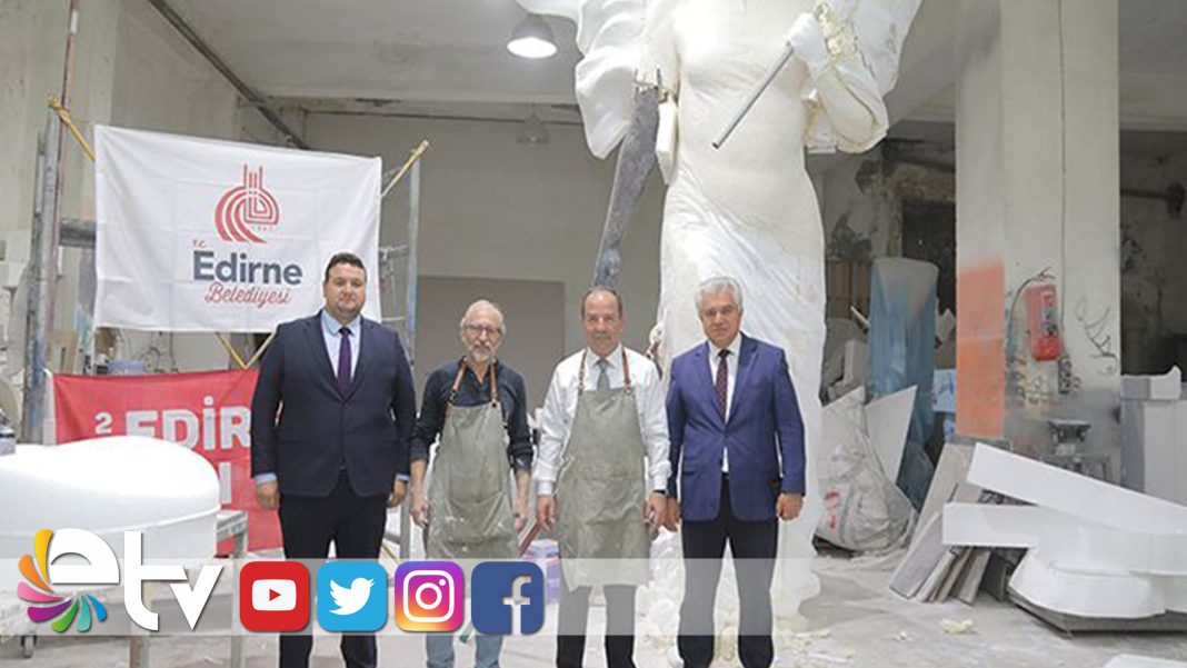 Heykeltıraş Hüsnü Ertuğ Atlı’nın atölyesini ziyaret ederek, 100’üncü Yıl Anıtı’nın yapım aşamalarına iştirak eden Edirne Belediye Başkanı Recep Gürkan, anıtın açılışının 25 Kasım 2022 tarihinde yapılacağını belirtti.