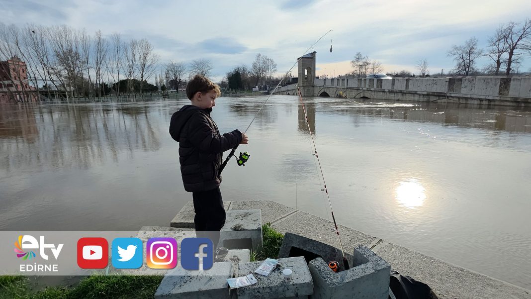 Edirne’de taşkınla birlikte tarlaların su altında kaldığı bölgede, 11 yaşındaki Arda Biçer dayısıyla birlikte balık tutmak için su basan alana geldi. bir süre oltasını suda bekletti ancak balık yakalayamayınca evin yolunu tuttu.