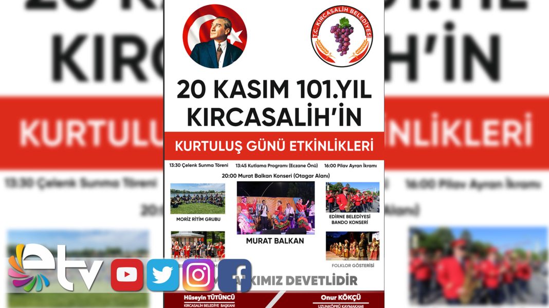 Kırcasalih’in 101’inci kurtuluş yıldönümü nedeniyle bir mesaj yayınlayan Kırcasalih Belediye Başkanı Hüseyin Tütüncü, 15 yıl aradan sonra yeniden kutlama programı düzenleyeceklerini kaydetti.