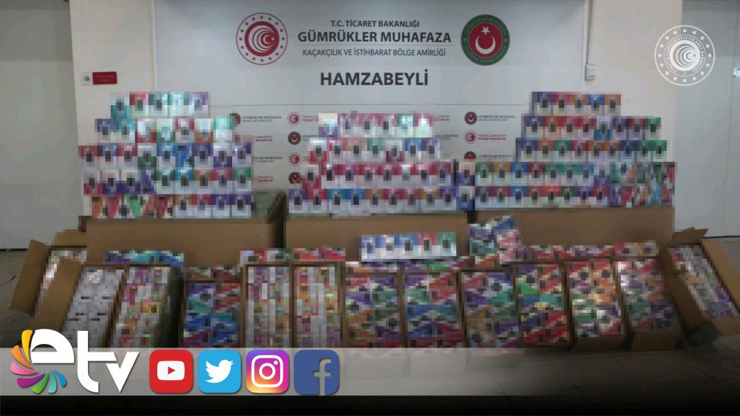 Hamzabeyli Sınır Kapısı’ndan ülkeye giriş yapmak isteyen bir tırda yapılan aramada, 24 milyon Türk lirası değerinde elektronik sigara ele geçirildi.