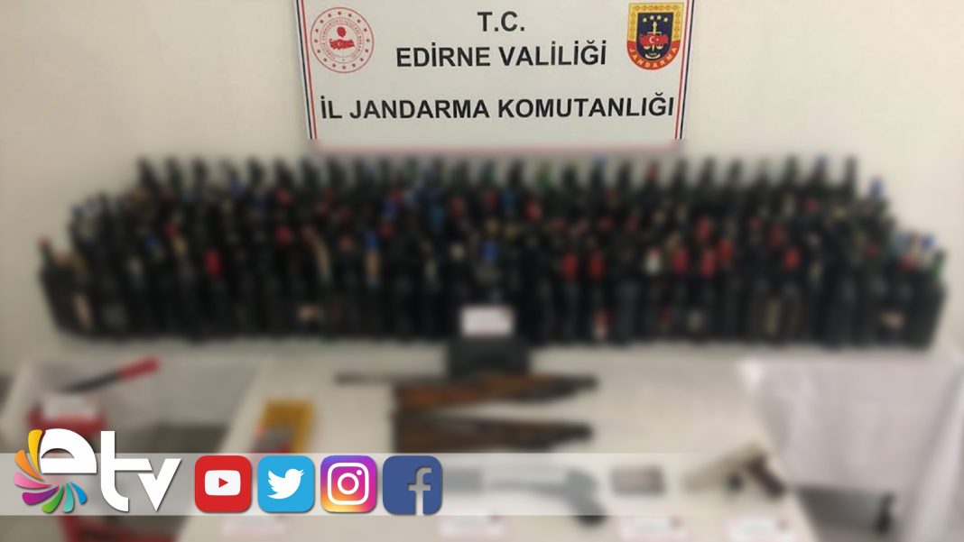 Edirne İl Jandarma Komutanlığı, kaçakçılık olaylarının engellenmesine yönelik çalışmalarına ara vermeden devam ediyor. Bu kapsamda; Edirne İl Jandarma Komutanlığı KOM Şube Müdürlüğünce elde edilen bilgiler neticesinde Uzunköprü ilçesinde S. C. T. adlı şahsın evinde arama yapıldı. Aramada; şişelere basılmış satışa hazır vaziyette 415 litre kaçak içki, 1 adet mantarlama makinesi, 3 adet ruhsatsız av tüfeği, 1 adet kurusıkı tabanca, 50 adet kurusıkı tabanca fişeği, 20 adet av tüfeği fişeği ele geçirildi. 13 bin 304 TL idari işlem yapılan şüpheli şahıs, adli makamlara sevk edildi.