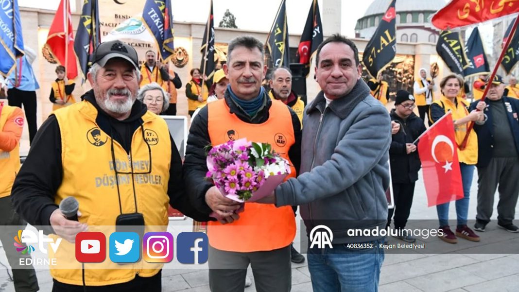 Çanakkale Savaşları’nda gösterdiği üstün mücadeleyle milletin hafızasında özel bir yere sahip olan 57. Alay’ın anısını yaşatmak için düzenlenen anlamlı yürüyüş sürüyor. Bu kapsamda Tekirdağ’dan yola çıkan gönüllüler, rotalarının önemli duraklarından biri olan Keşan’a ulaştı.