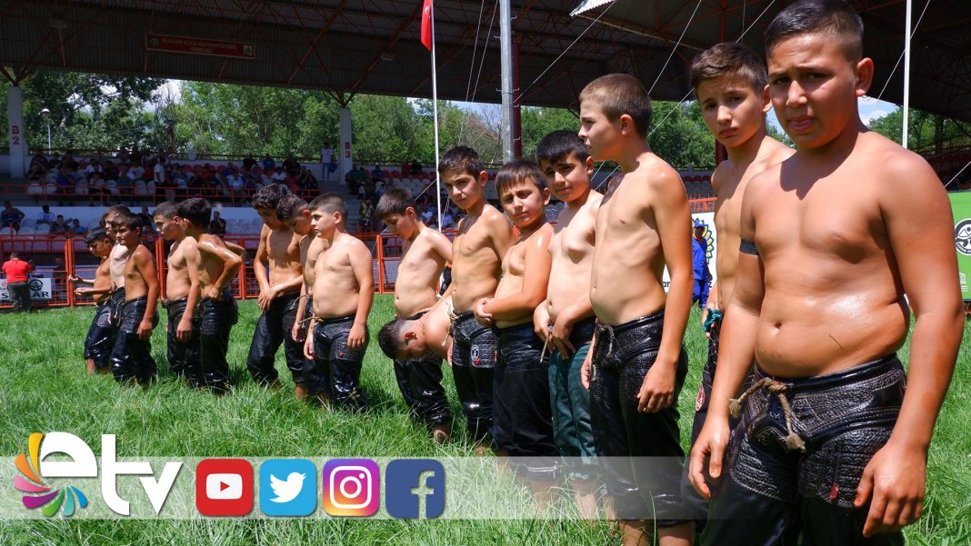 663. Kırkpınar Yağlı Güreşleri’nde heyecan, minik 1 boy pehlivanların güreşleriyle başladı. Cuma namazının ardından Edirne Sarayiçi Er Meydanı’na gelen pehlivanlar, kule hakemlerinin çağrısıyla hazırlıklarını tamamladı. Minikler, yağlanmanın ardından rakipleriyle kol bağladı.