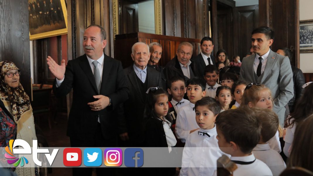 Hem huzurevi sakinleri hem de minik öğrenciler ile yakından ilgilenen Başkan Gürkan, ziyaretçilere Atatürk Odası ile ilgili bilgiler verdi.