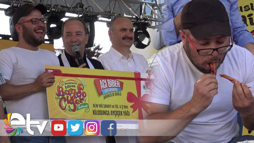 10. Edirne Uluslararası Edirne Bando ve Ciğer Festivali son gününde renkli görüntülere sahne oldu. Acı biber yeme yarışmasında Şanlıurfalı üniversitesi Emrah Mucurtay, 90 adet acı biber yiyerek yarışmanın birinciliğini elde etti. 84 kilo olan acı biber şampiyonu, ödül olarak ise ağırlığınca ayçiçek yağı kazandı.