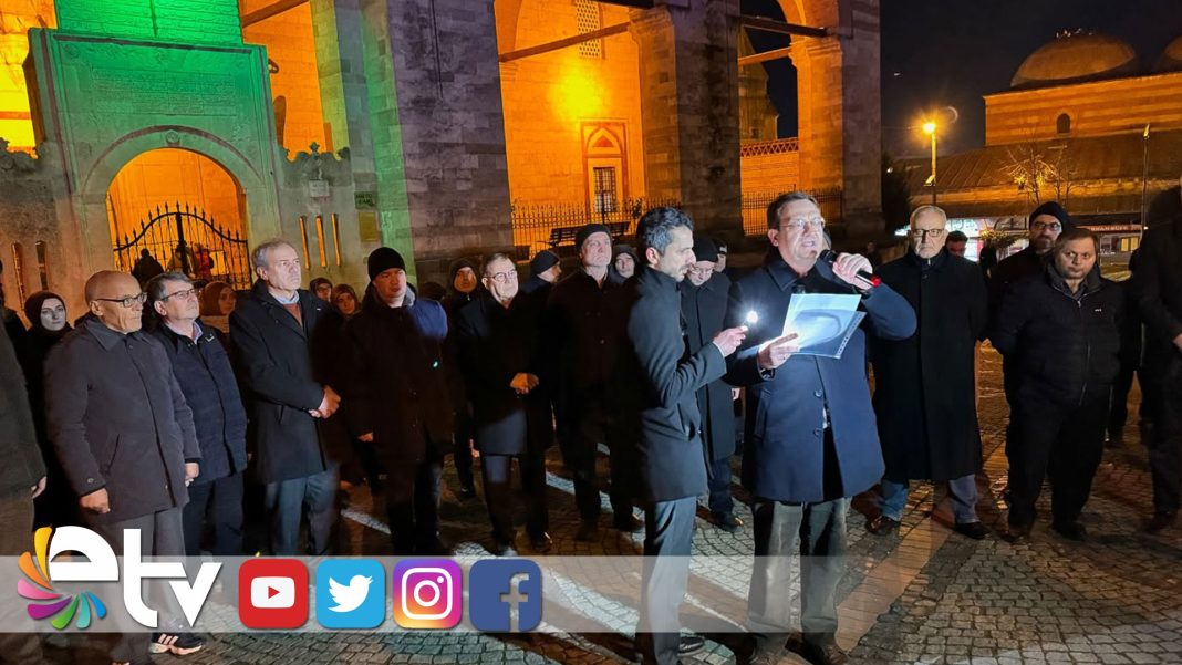 İsrail ile Hamas arasında yapılan ateşkes nedeniyle Eski Cami önünde bir araya gelen Anadolu Gençlik Derneği Edirne Şubesi üyeleri, basın açıklaması yaptı ve dua etti.