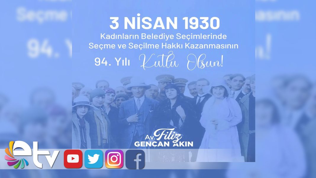 31 Mart Yerel Seçimlerinde seçmenlerden yüzde 46,67 oy alarak Edirne Belediye Başkanı seçilen Filiz Gencan Akın, Türkiye’deki kadınlara seçme ve seçilme hakkı tanınmasının 94’üncü yıl dönümü nedeniyle bir mesaj yayımladı.
