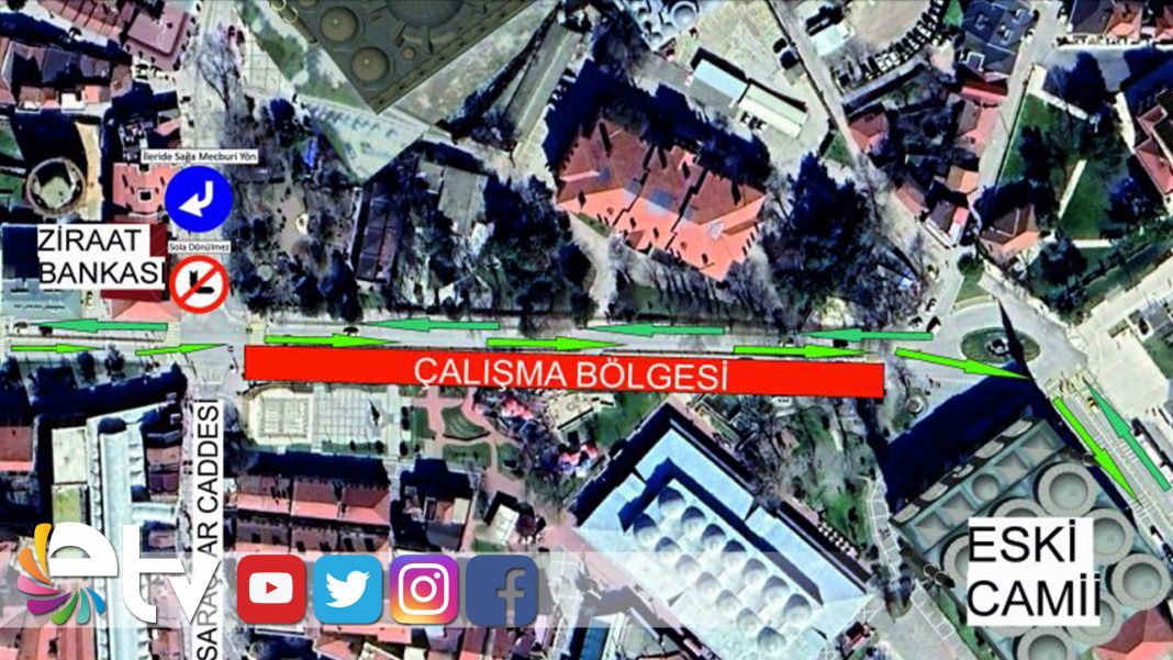 “Altyapı çalışmaları kapsamında; 10.08.2023 tarihi, saat: 07:30 itibarı ile Saraçlar Caddesi Kavşağı-Eski Cami Kavşağı istikametinde çalışma yapılacaktır. Çalışmalar esnasında trafik, Eski Cami Kavşağı-Saraçlar Caddesi Kavşağı istikametinde gidiş-geliş olarak sağlanacak olup, Saraçlar Caddesi Kavşağı-Eski Cami Kavşağı istikametinde yer alan yol trafiğe kapatılacaktır. Hükümet Caddesi (Edirne Valiliği) istikametinden-Saraçlar Caddesi istikametine ilerleyen araçlar için mecburi yön Atatürk Bulvarı (D-100) istikametinden; Maarif Caddesi, Mithatpaşa Mahallesi ve Gazimihal Köprüsü istikametinde olacaktır. Saraçlar Caddesi-Ayşekadın istikametine gidecek sürücülerin alternatif yollar aracılığı ile Güney ve Kuzey Çevre Yollarını kullanmaları önemle rica olunur”
