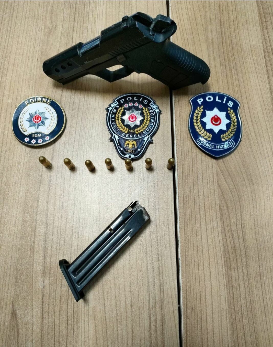 Edirne’de polis ekiplerinin devriye görevi sırasında şüphe üzerine durdurduğu şahsın üst aramasında ruhsatsız tabanca ele geçirildi.