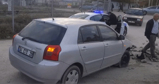 Uzun süren takibin ardından kaza yapan otomobilden inerek kaçmaya çalışan şüpheli U.K. (25), İstasyon Mahallesi'ndeki hemzemin geçitte yakalandı.