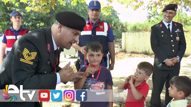 Tekirdağ İl Jandarma Komutanlığı Trafik Şube Müdürü Kıdemli Astsubay Uğur Palancı da durdurdukları araçtaki çocuklara sürücünün trafik kuralı ihlali yapması halinde kullanmaları için kırmızı renkli düdük ve broşür hediye etti.