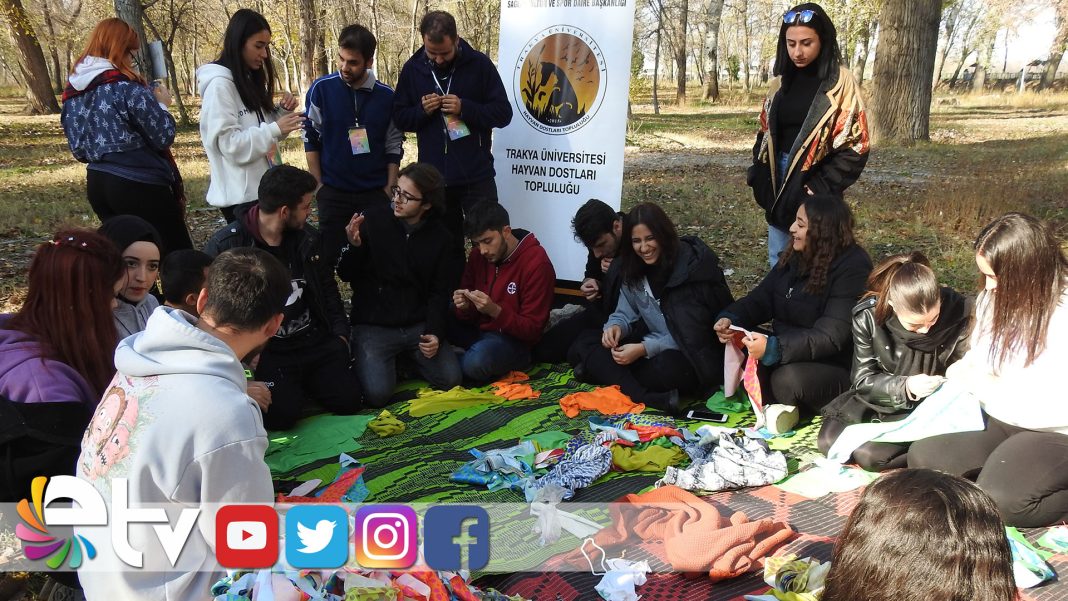 Edirne’de, “Avrupa Atık Azaltım Haftası” etkinlikleri çerçevesinde harekete geçen Trakya Üniversitesi Hayvan Dostları Topluluğu üyesi öğrenciler, soğuk havalarda sokakta yaşayan canlar için atık kumaşlardan battaniye hazırladı.