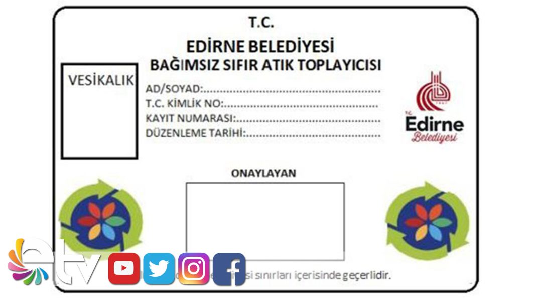 Çevre, Şehircilik ve İklim Değişikliği Bakanlığı, ‘Atık Toplayıcıları’ konulu Genelgesi kapsamında Edirne Belediyesi, Edirne’de kağıt, plastik, metal, cam gibi ambalaj atıklarını toplayacak bağımsız atık toplayıcılarına ‘Bağımsız Atık Toplayıcısı Kartı’ verecek. Bu uygulama ile atık emekçilerine mesleki statü verilerek daha sağlıklı ortamda çalışabilmesi ve atıkların kontrolünün sağlanması hedefleniyor.