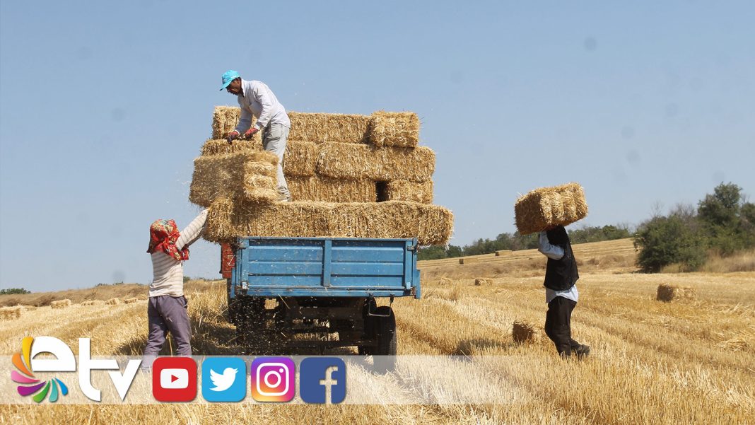 Edirne’de tarım işçilerinin kavurucu sıcaklar altında zorlu mesaisi sürüyor. Buğday tarlaları biçildikten sonra hayvancılıkta yem olarak kullanılan samanlar ilk olarak makineyle bağlanarak balyalar haline getiriliyor. Yaklaşık 25 kilogram ağırlığındaki saman balyaları daha sonra işçiler tarafından traktörlere ve tırlara yükleniyor.