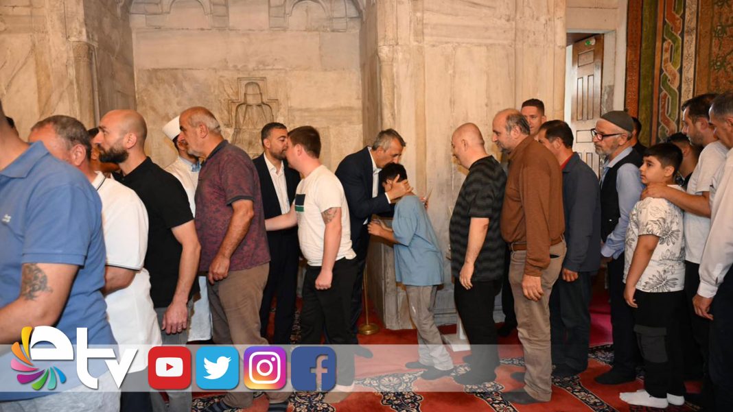 Bayram namazını Eski Cami’de kılan Edirne Valisi Yunus Sezer de, namazın ardından camideki vatandaşlarla tek tek bayramlaştı. Vali Sezer, çocuklara da harçlık vererek yüzlerini gülümsetti.
