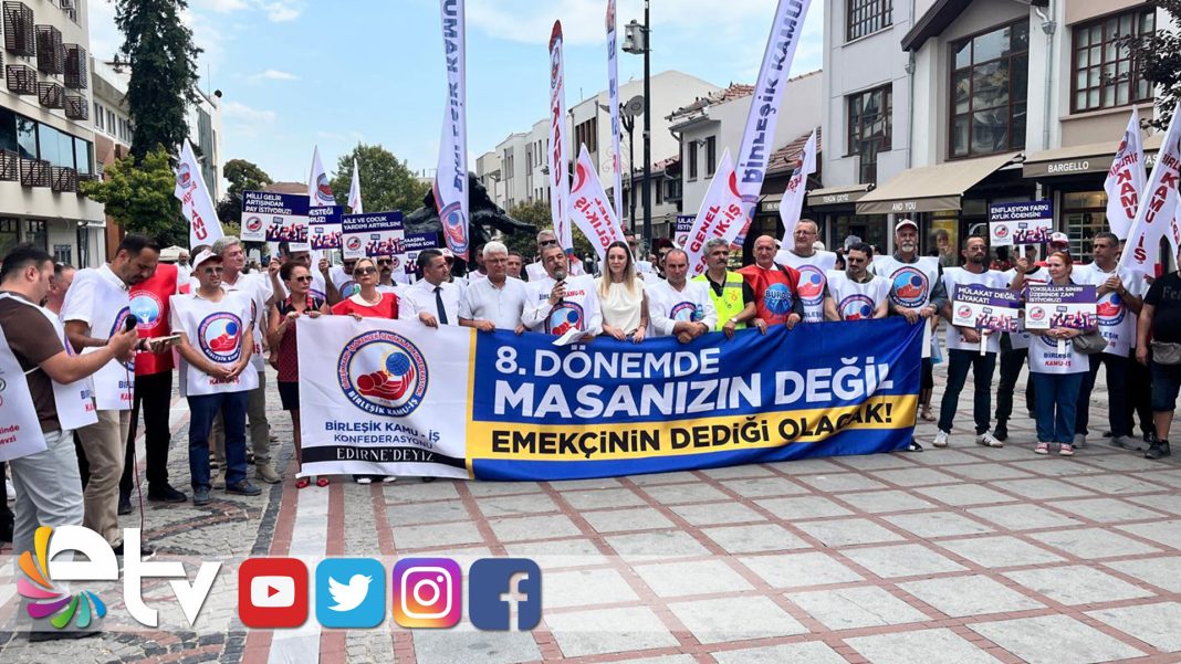 Birleşik Kamu-İş Konfederasyonu, 8. Dönem Toplu İş Sözleşmesi taleplerini kamuoyuyla paylaştı. Saraçlar Caddesi’nde gerçekleştirilen basın açıklamasına; Birleşik Kamu-İş Konfederasyonu Genel Başkanı Orhan Yıldırım, CHP Edirne İl Başkanı Av. Harika Taybıllı, Zafer Partisi Edirne İl Başkanı Serkan Konak, CHP Edirne Merkez İlçe Başkanı Yücel Balkanlı, Birleşik Kamu-İş Konfederasyonu MYK Üyesi Mehmet Koç, Eğitim-İş Edirne Şube Başkanı Nedim Zobar ile konfederasyona bağlı sendika temsilcileri ve üyeler katılım gösterdi.