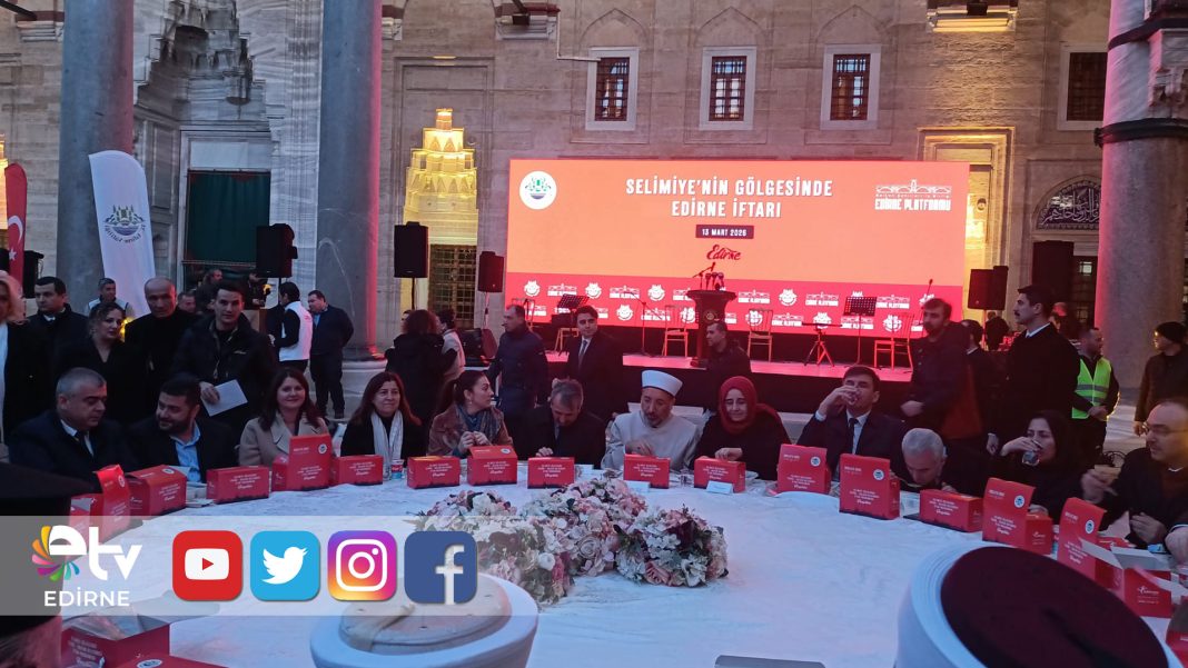 Edirne Valiliği Balkan Şehirleri İş Birliği Edirne Platformu tarafından Selimiye Camisi avlusu ve çevresinde geniş katılımlı iftar programı düzenlendi. Vali Yunus Sezer’in girişimleriyle bu yıl üçüncüsü gerçekleştirilen “Büyük Selimiye İftarı”, Balkanlar’dan gelen çok sayıda konuğu aynı sofrada buluşturdu.