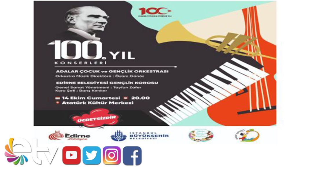 Edirne Belediyesi Gençlik Korosu ile İstanbul Büyükşehir Belediyesi Adalar Çocuk ve Gençlik Orkestrası’nda yer alan toplam 100 sanatçı, 14 Ekim Cumartesi Günü Saat 20.00’de 100 Yıl Konseri ile sanatseverlerle buluşacak.