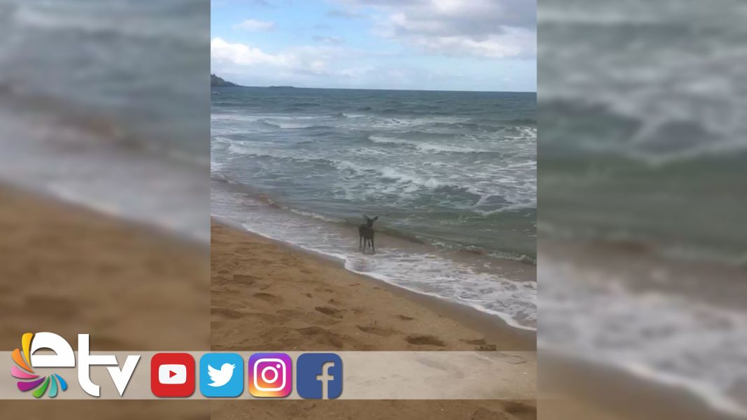 Denizin kıyısındaki karaca yavrusunu kayda alan Alper Akgül isimli vatandaş, bir süre karacaya seslenerek ‘Gel korkma’ demesine rağmen kameraya bir süre poz veren karaca yavrusu bir süre duraksayarak kameraya poz verdi.