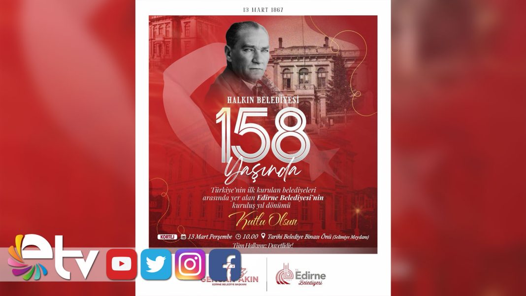 Edirne Belediyesi, 13 Mart’ta 158’inci kuruluş yıldönümünü kutlayacak.
