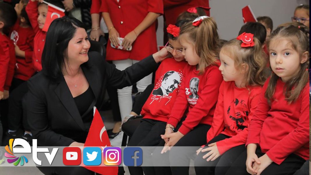 Edirne Belediye Başkanı Av. Filiz Gencan Akın, Edirne Belediyesi Kırkpınar Ağası Seyfettin Selim Kreş ve Gündüz Bakımevi öğrencilerinin Cumhuriyet Bayramı için hazırladığı gösteriyi izleyerek miniklerin bayram heyecanına ortak oldu.