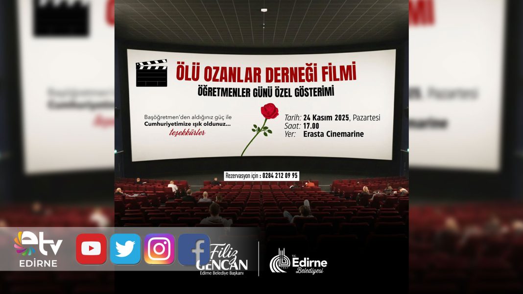 Belediye tarafından yapılan açıklamada ise film gösterimine katılmak isteyen öğretmenlerin, Edirne Belediyesi Kültür ve Sosyal İşler Müdürlüğüne ait telefon üzerinden rezervasyon yaptırmaları rica edildi.