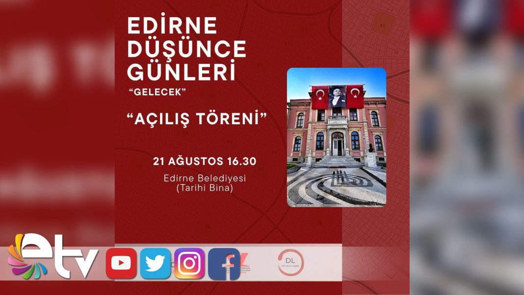 Edirne Belediyesi, TAKSAV ve Dönüşüm Logos iş birliğiyle düzenlenen Edirne Düşünce Günleri, 21–24 Ağustos tarihleri arasında gerçekleştirilecek.