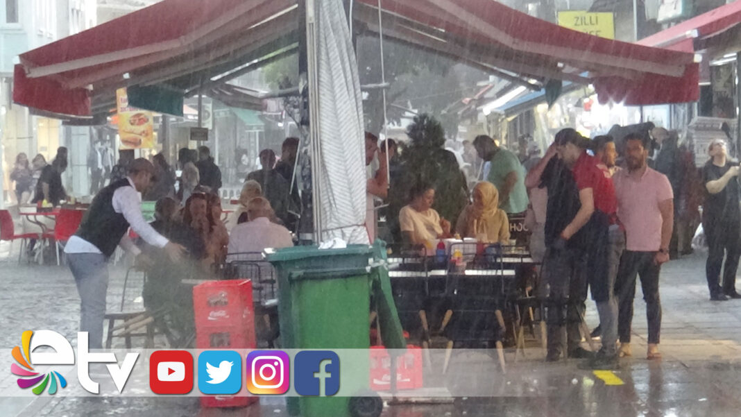 Edirne’de öğle saatlerinde 30 dereceye kadar yaklaşan hava sıcaklığı vatandaşları bunalttı. Ancak ilerleyen saatlerde sıcak ve güneşli hava yerini aniden bastıran sağanak yağışa bıraktı. Aniden bastıran ve 10 dakika süren sağanak yağışa hazırlıksız yakalanan vatandaşlar zor anlar yaşadı. Yağmurdan korunmak için vatandaşlar pasaj içlerine, mağazalara, çatı altlarına sığındı.
