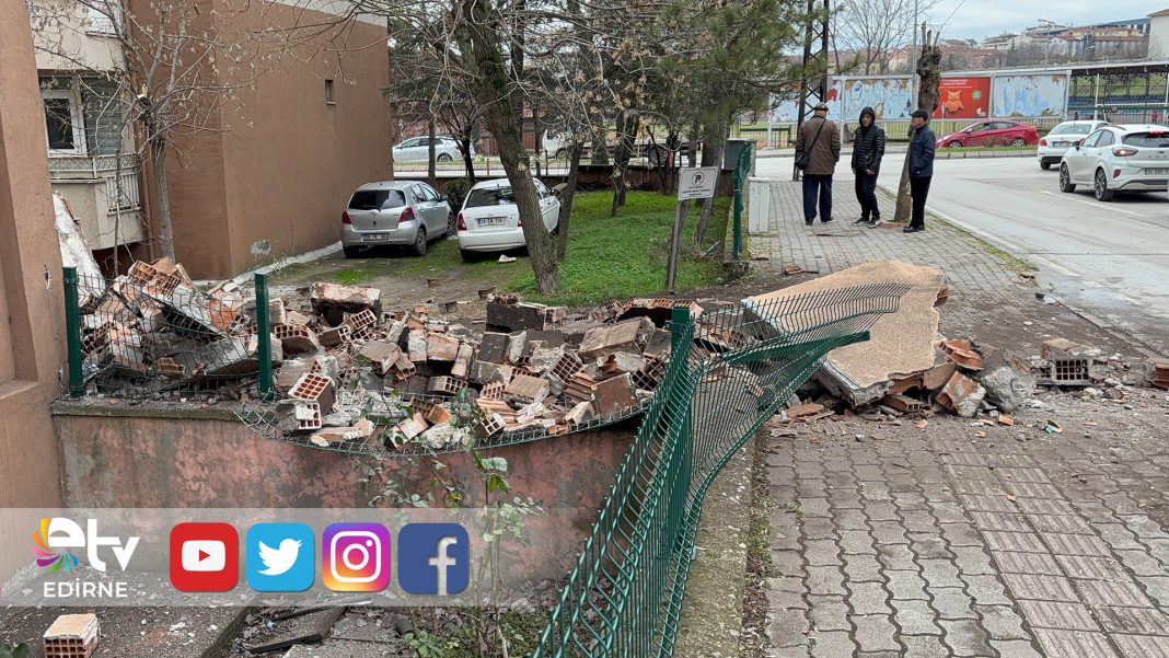 Edirne’de etkili olan sağanak yağışların ardından, 1. Murat Mahallesi Zübeyde Hanım Caddesi üzerinde bulunan bir apartmanın bacası büyük bir gürültüyle çöktü. Olayda şans eseri yaralanan olmazken, bacanın düşmesi sonucu park halindeki bir otomobilde maddi hasar meydana geldi.