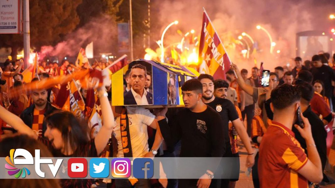 Bazı Galatasaraylı taraftarlar, Fenerbahçe renklerinden oluşan maket tabutu sırtlarında taşıyarak kutlama yaptı. Öte yandan, başka bir taraftar grubunun ise araçlarının arkasına bağladıkları fiber tekne üzerinde kutlama yapması ortaya ilginç görüntüler çıkardı.