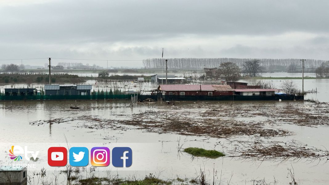 Meriç Nehri’nin debisi, barajlardan salınan suyun azalmasıyla birlikte bu sabah itibarıyla 1229 metreküp/saniye seviyesine geriledi. Yaşanan bu kısmi düşüşe rağmen, nehir yatağından taşan sular nedeniyle bölgedeki tarım arazileri, hobi bahçeleri ve bazı yerleşim alanları halen su altında bulunuyor.